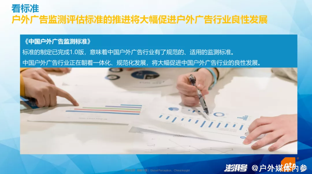 這一標(biāo)準(zhǔn)的發(fā)布,對(duì)戶(hù)外廣告行業(yè)有著歷史性的意義。長(zhǎng)期以來(lái),戶(hù)外廣告的監(jiān)測(cè)一直是短板,因?yàn)槿鄙傧嚓P(guān)的數(shù)據(jù),廣告主無(wú)法保障戶(hù)外媒體投放的權(quán)益和效果。而戶(hù)外廣告公司為了滿(mǎn)足廣告主的需求,也希望找到有效監(jiān)測(cè)和評(píng)估的系統(tǒng)。基于以上情況,《中國(guó)戶(hù)外廣告監(jiān)測(cè)標(biāo)準(zhǔn)1.0》建立科學(xué)、規(guī)范、適用的戶(hù)外廣告監(jiān)測(cè)標(biāo)準(zhǔn),有利于保障廣告主投放權(quán)益,有利于促進(jìn)市場(chǎng)參與方實(shí)現(xiàn)共贏,有利于推動(dòng)和建設(shè)健康的戶(hù)外媒體商業(yè)環(huán)境,有利于實(shí)現(xiàn)戶(hù)外媒體行業(yè)有序、健康、可持續(xù)發(fā)展。